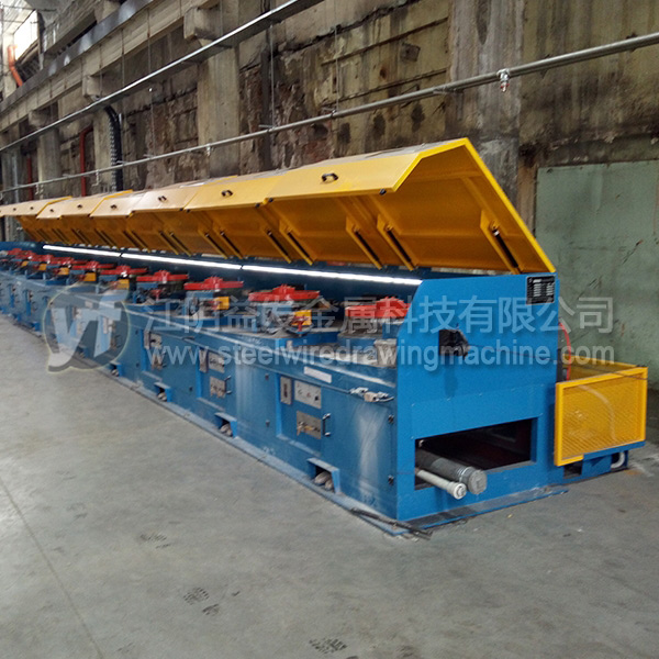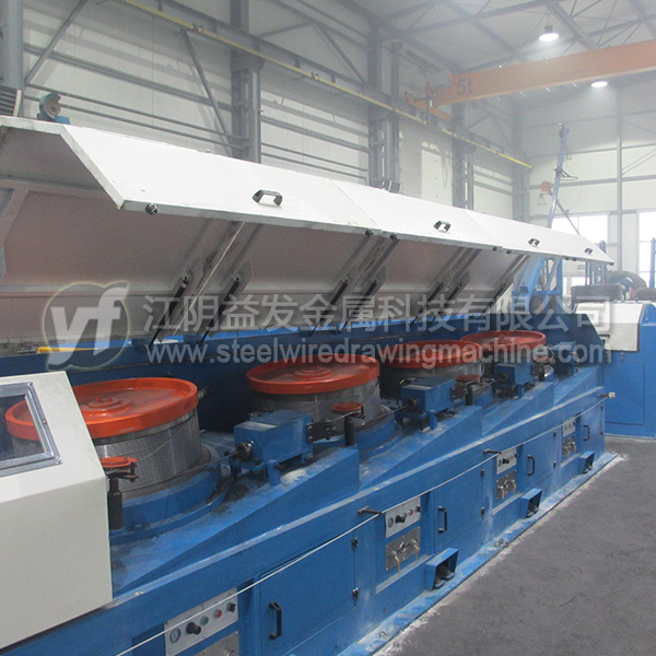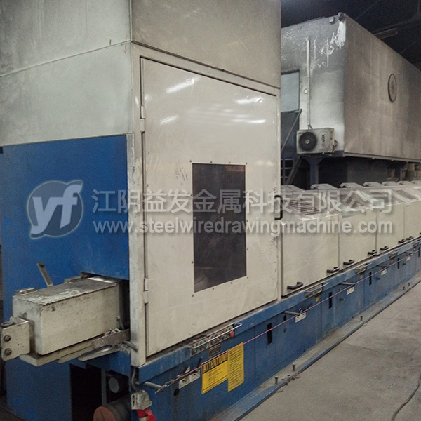 9、拉絲卷筒表面采用R與分級傾斜角設計,適度的R角確保用戶要求的鋼絲具有足夠的推力,使鋼絲拉拔后平滑無跳動上移,分級傾斜角確保鋼絲冷縮時整齊排列,持續與卷筒進行熱交換;卷筒的基體材料為45#,粗加工后熱處理,基體硬度48°,然后卷筒表面噴涂碳化鎢,硬度58°--- 62°,研磨后的卷筒表面光潔度≤0.02mm,光滑的表面確保不擦傷鋼絲,卷筒的水冷系統擁有國家專利(實用新型專利,專利號: ZL 2018 2 0667547.0):卷筒內部采用自除垢系統,冷卻水與卷筒內壁保持5mm間隙,冷卻水環繞卷筒內壁均勻進行熱交換,事實證明此結構效率達80%以上,使用10年以上水路系統免修理,是高效低成本高質量拉拔低碳鋼絲的*佳技術裝備,戶外循環冷卻水池用戶自作,推薦水池尺寸:長3米 × 寬2米 × 深2米